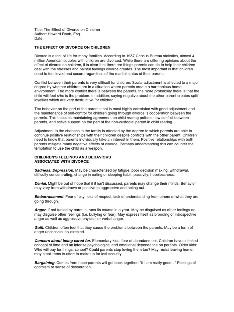 The Effect Of Divorce On Children Court Ordered Parenting Class