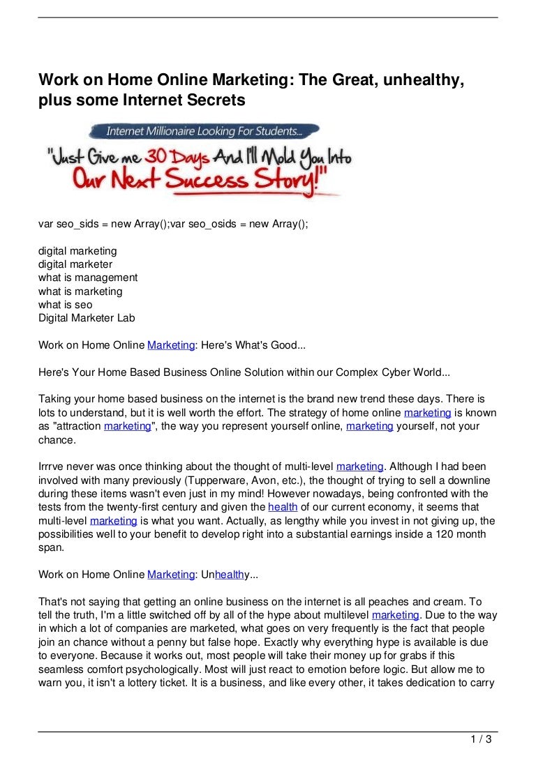 Work On Home Online Marketing The Great Unhealthy Plus Some Intern