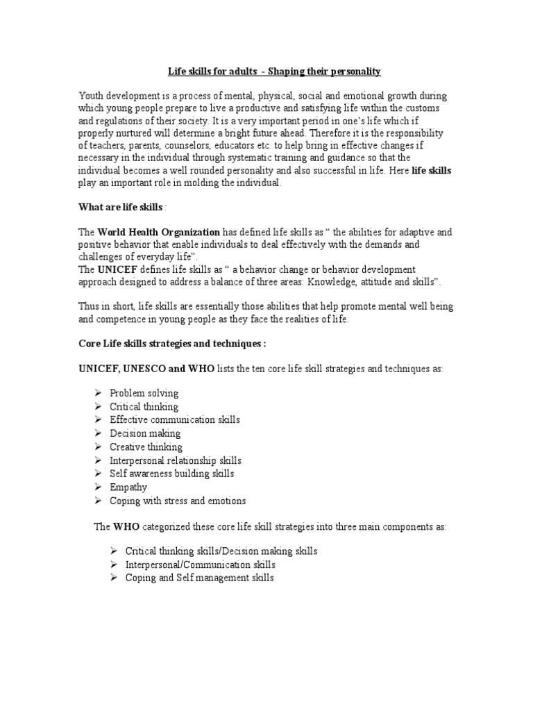 Life Skills Article Doc Life Skills Interpersonal Relationships