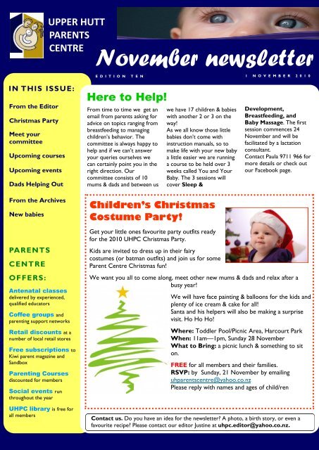 November Newsletter Parents Centres New Zealand Inc