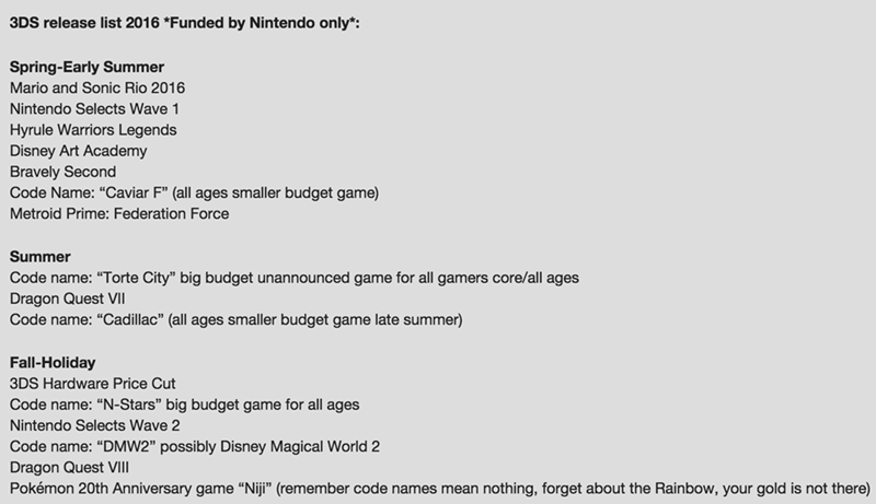 Nintendo S Rumored 2016 Line Up Includes Pokemon Rainbow Video