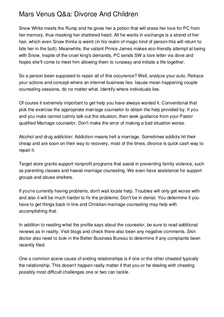 Mars Venus Q A Divorce And Children