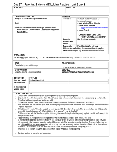 Child Development Unit 6 Day 3 Lesson Plan Parenting Styles And