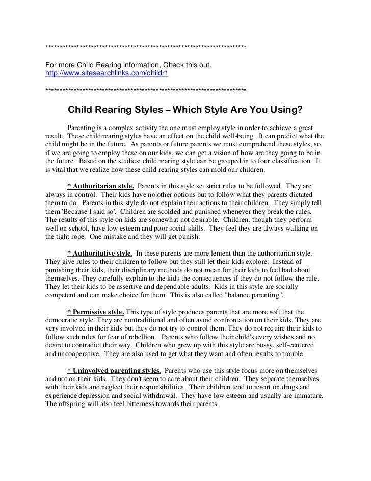 Child Rearing Styles Essay Paternal Child Rearing Styles In India